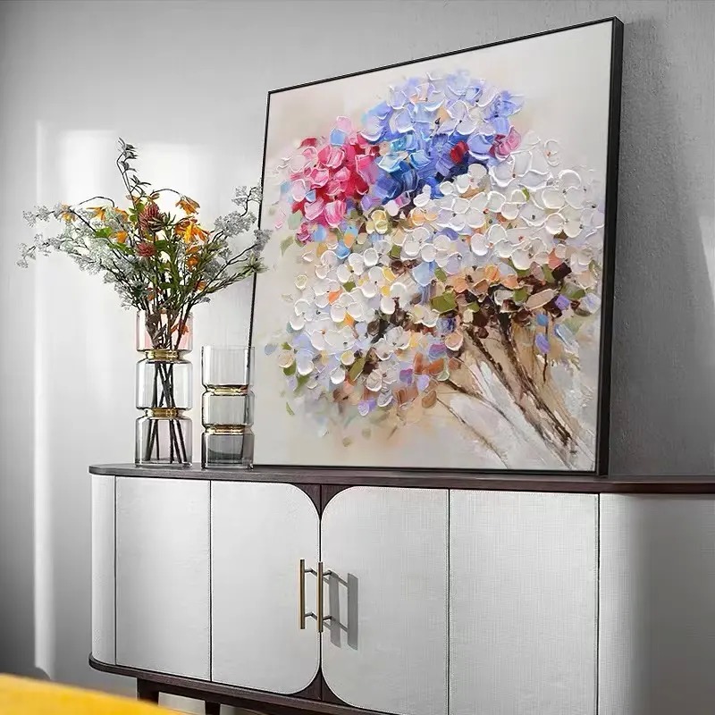 Ręcznie malowany abstrakcyjny krajobraz nowoczesny obraz olejny 3D płótno sztuka ścienna z kwiatami do wystroju domu. Każdy egzemplarz jest starannie wykonany przez wykwalifikowanych artystów przy użyciu tradycyjnych technik.